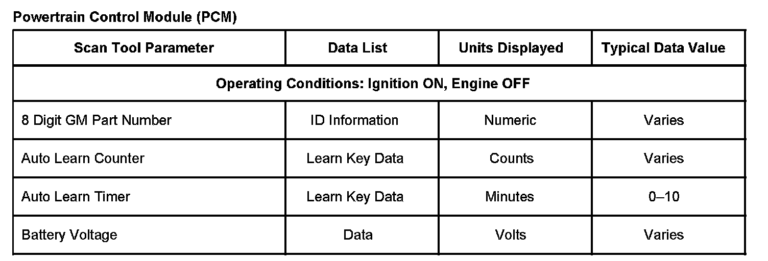 Scan Tool Data, Normal Values and Definitions