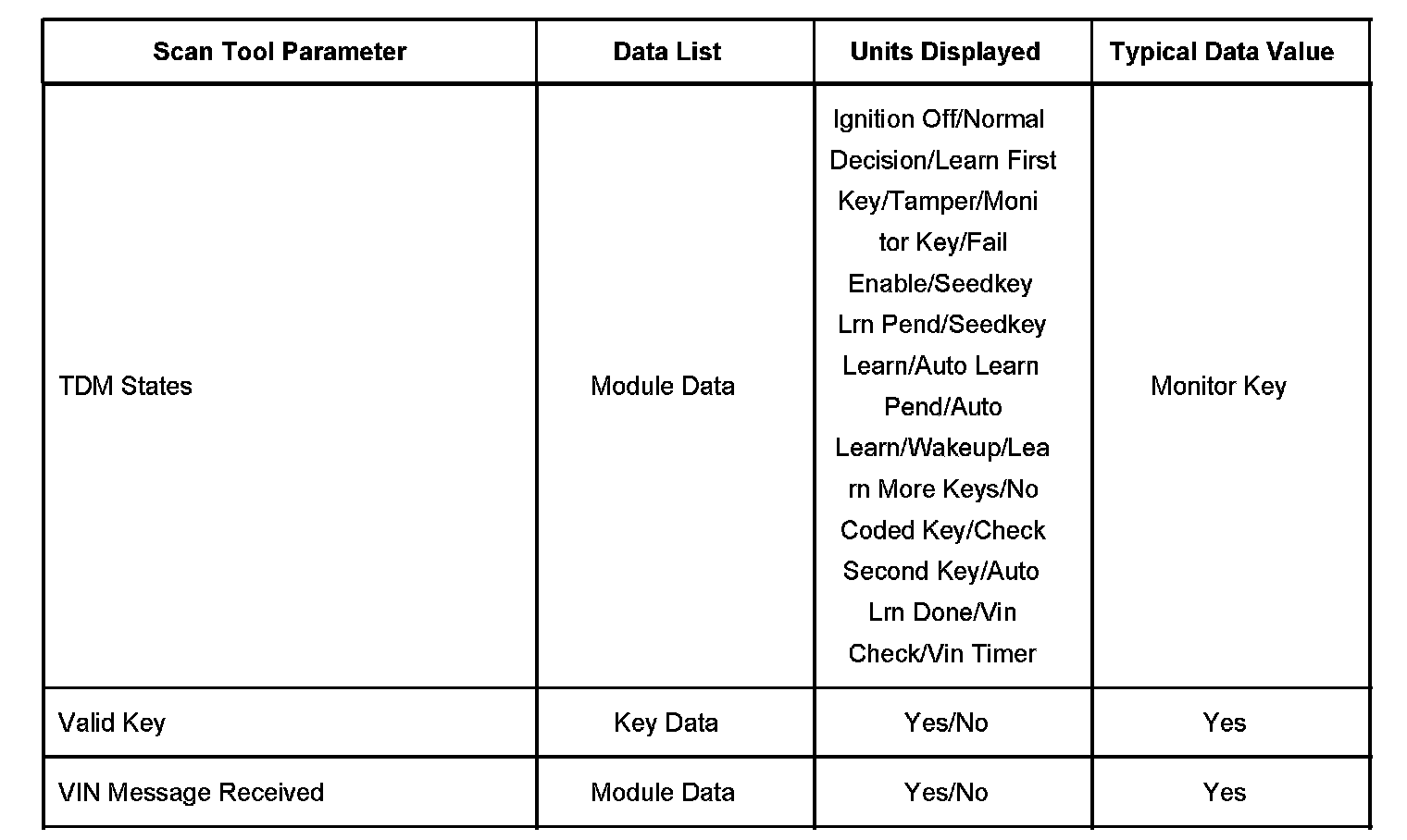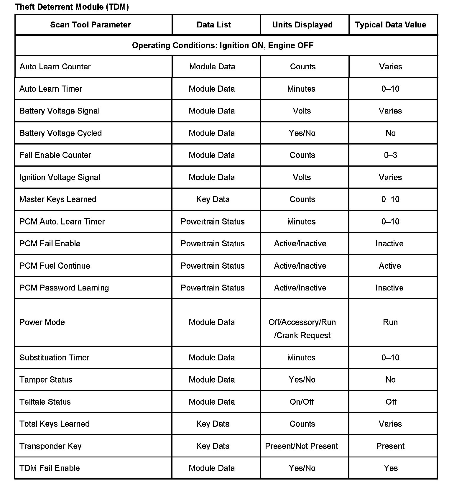 Scan Tool Data List - Antitheft System