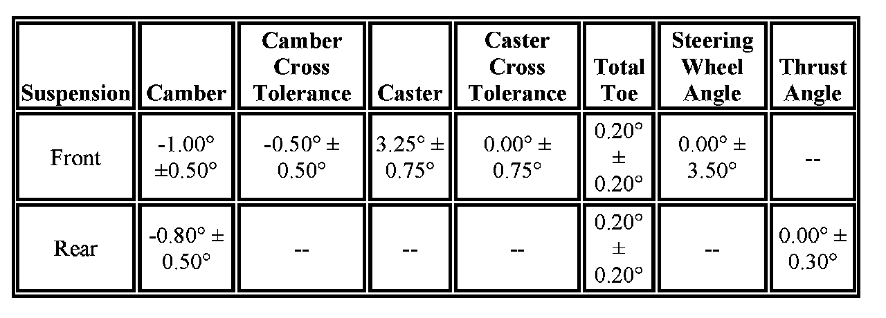 Wheel Alignment Specifications