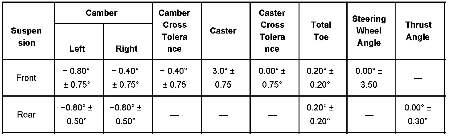 This bulletin is being issued to revise the Trim Height Specifications (for 2005) and the Wheel Alignment Specifications (for 2004 and 2005) in the Wheel Alignment sub-section of the Service Manual. Please replace the current information in the Service Manual with the information shown.