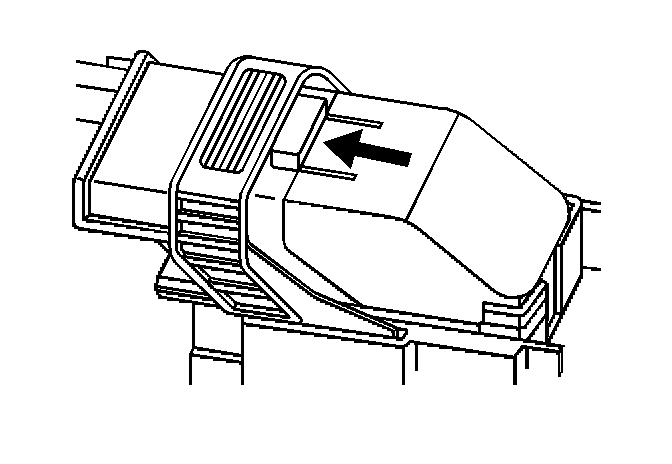3. Locate the dress cover locking tabs at the front of the connector. Using a small flat-blade tool push down on one of the locking tabs and pull the cover up until the dress cover releases. Repeat this procedure for the other locking tab.
