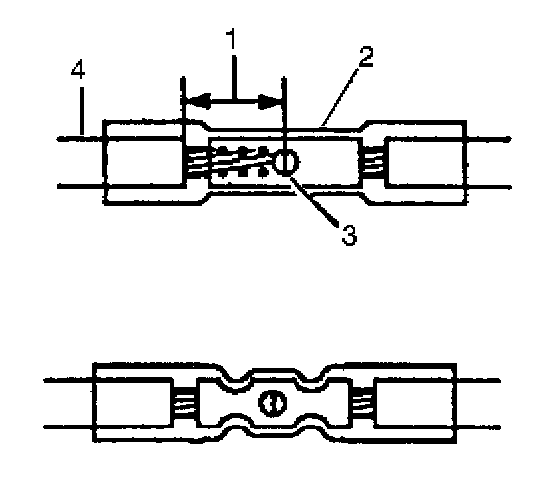 - Strip approximately 7.5 mm (5/16 in) of insulation from each wire to be spliced (1).