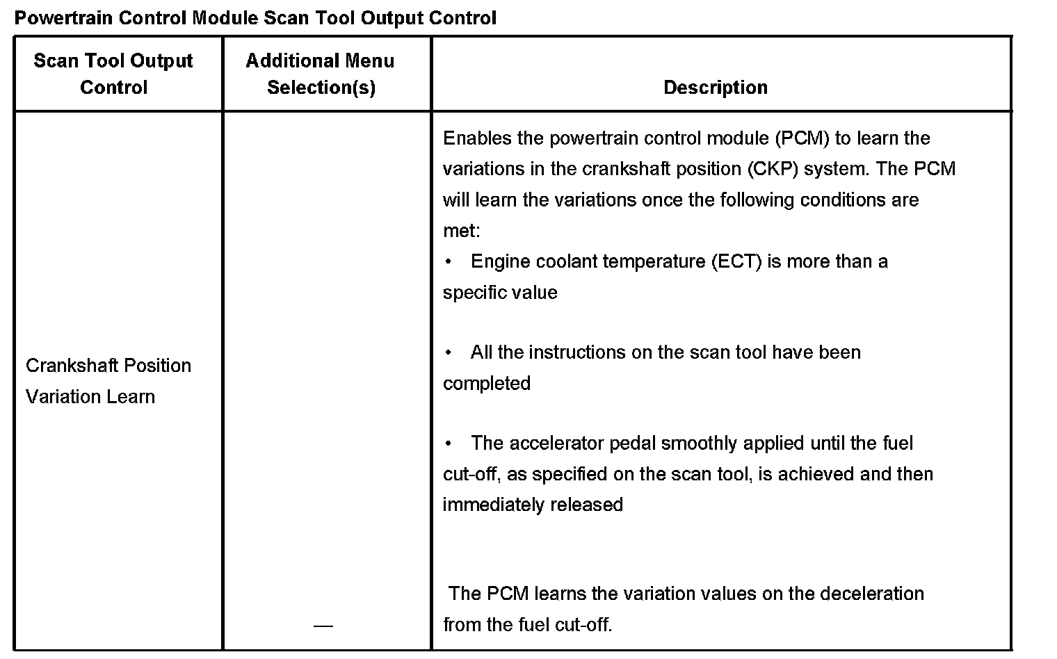 Powertrain Control Module Scan Tool Output Control Part 1: