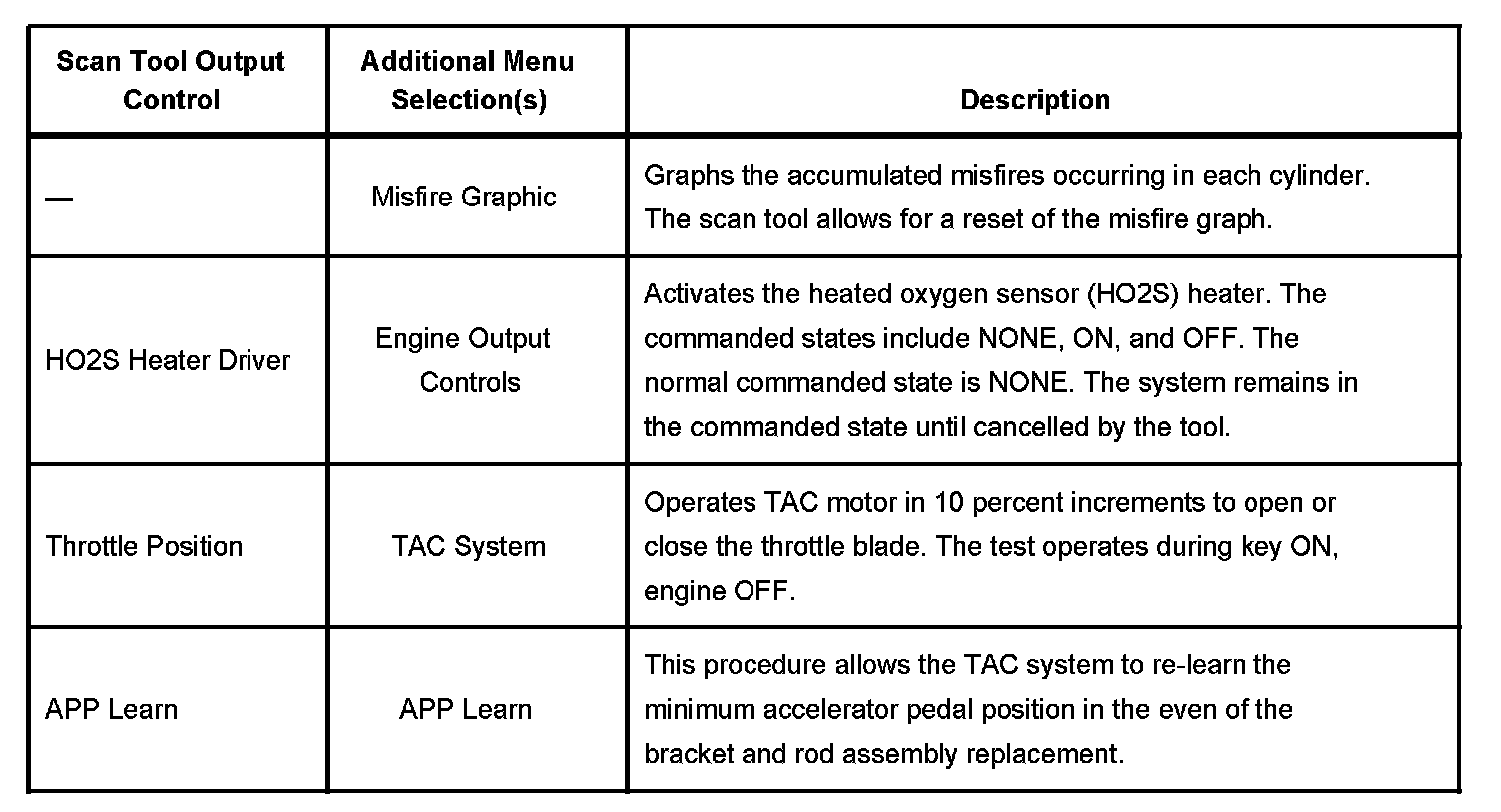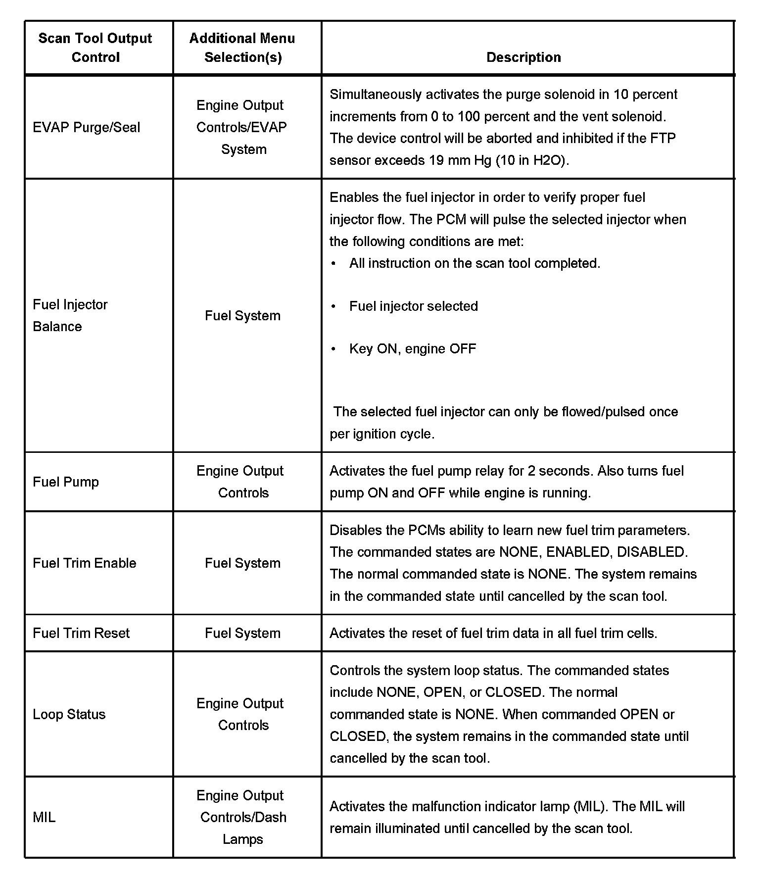 Scan Tool Output Controls