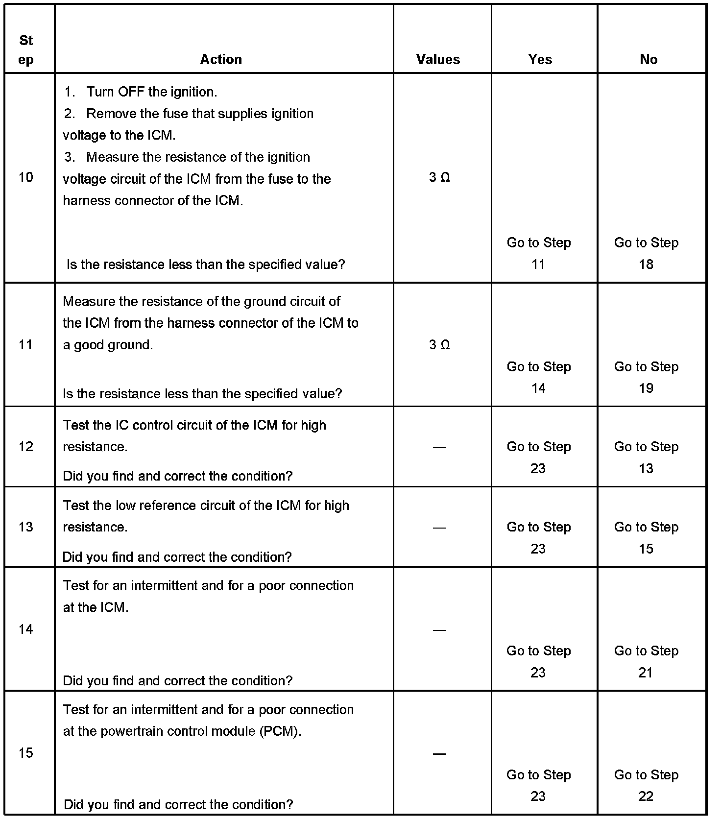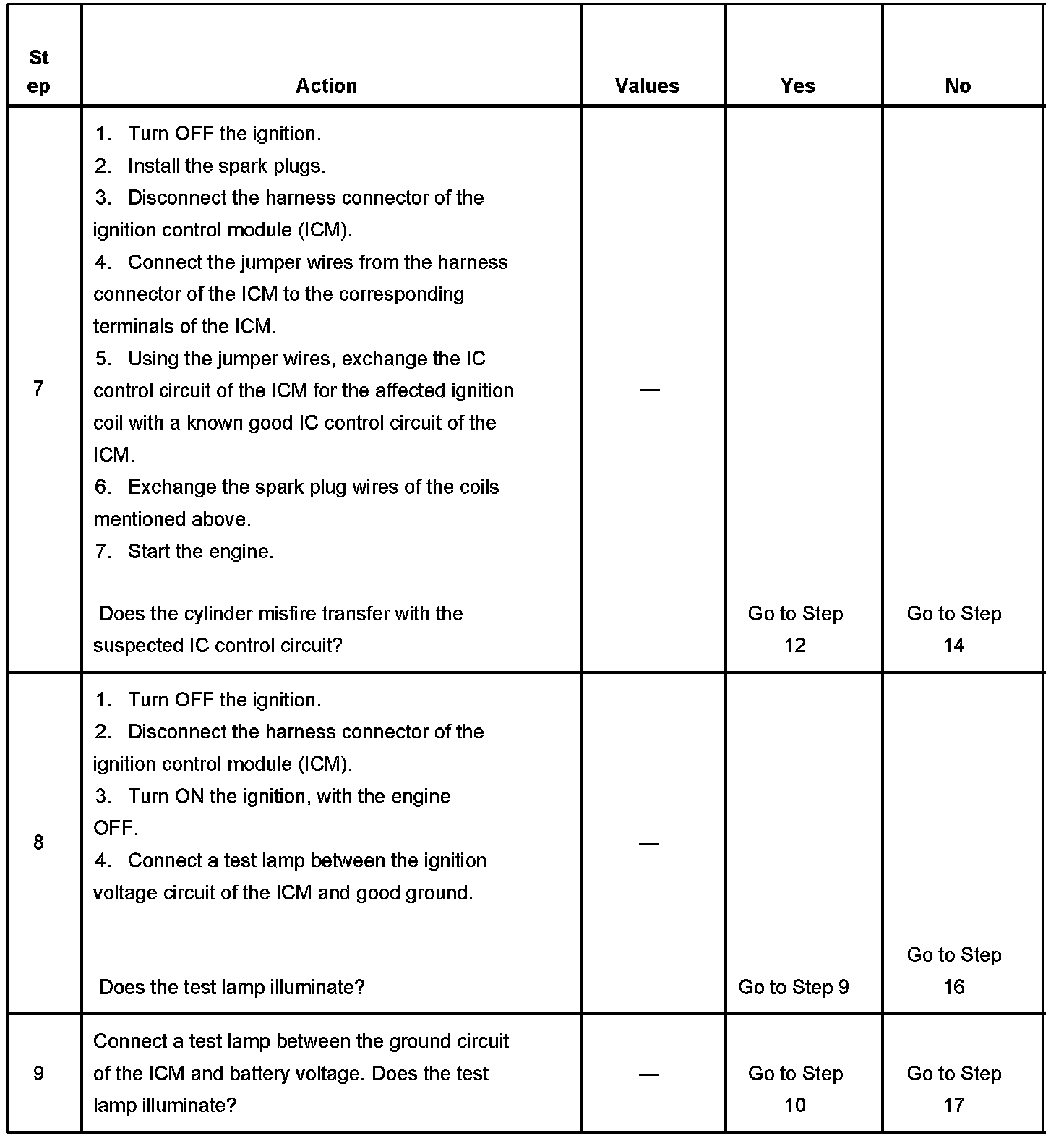 The powertrain control module (PCM) controls each dual-tower ignition coil by transmitting timing pulses on the IC control circuit to the ICM for the proper coil to enable a spark event.