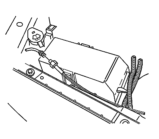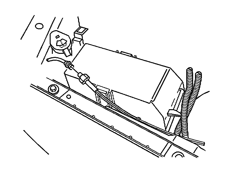 3. Disconnect the clip retaining the windshield washer hose to the battery tray.