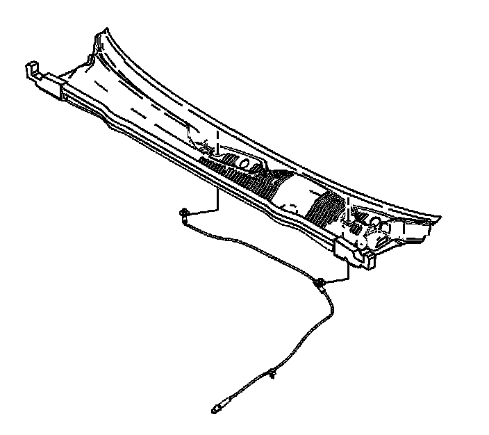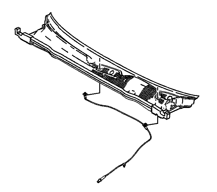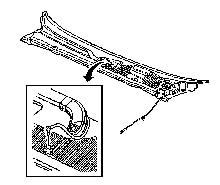 2. Install the windshield washer hose to the air inlet grille panel. Ensure that the hose is seated into the retaining features on the air inlet grille panel.