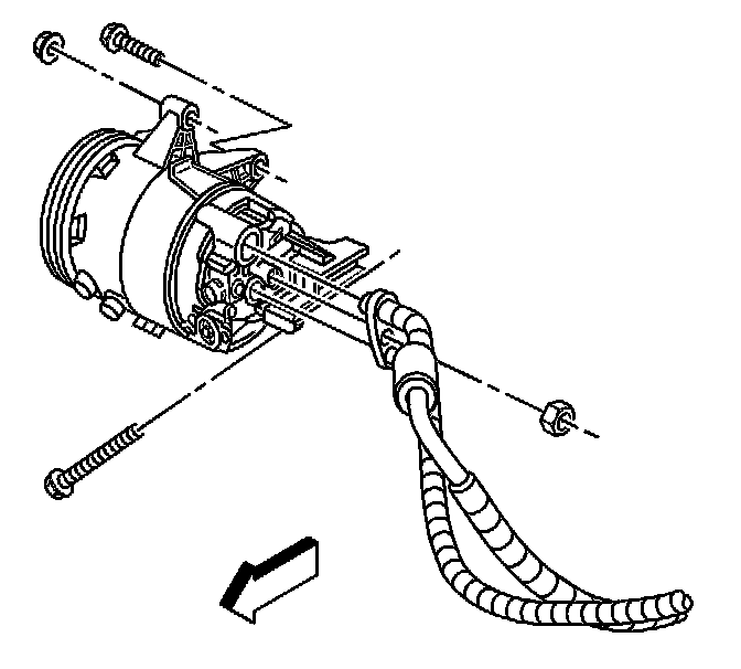 8. Remove the A/C compressor hose nut from the A/C compressor.