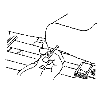 4. Use a small, flat-bladed tool to remove the push-in retainer from the front of the front seat cushion trim panel.