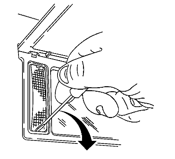 2. Insert a small flat-bladed tool at the lower edge of the lamp lens. Carefully press down to remove the lens.