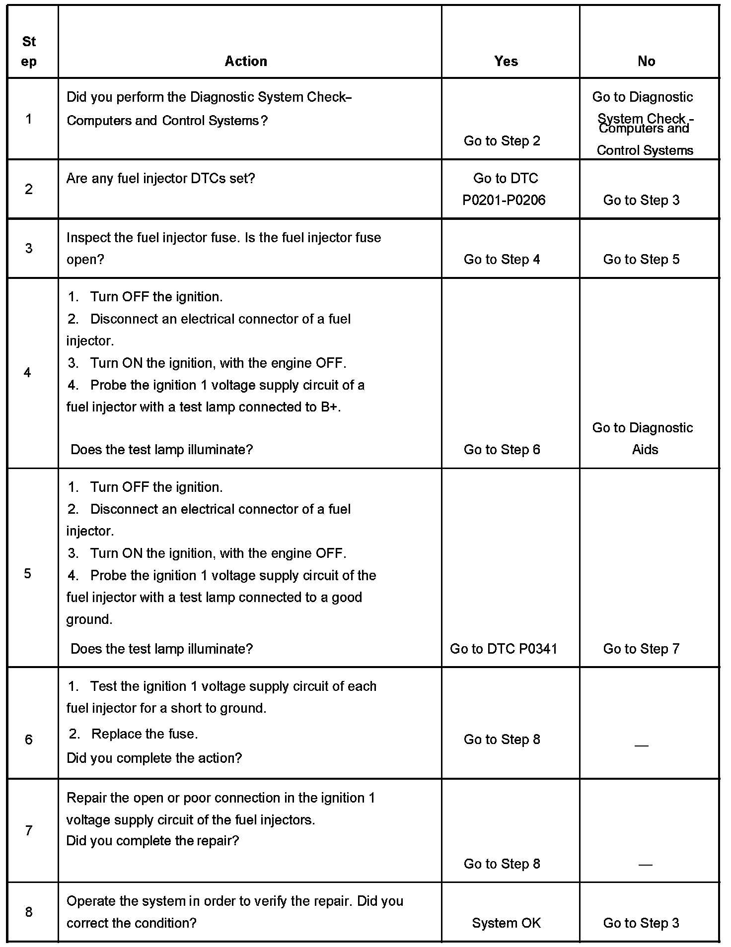 - Performing the Fuel Injector Coil Test may help isolate an intermittent condition. Refer to Fuel Injector Coil Test. Component Tests and General Diagnostics