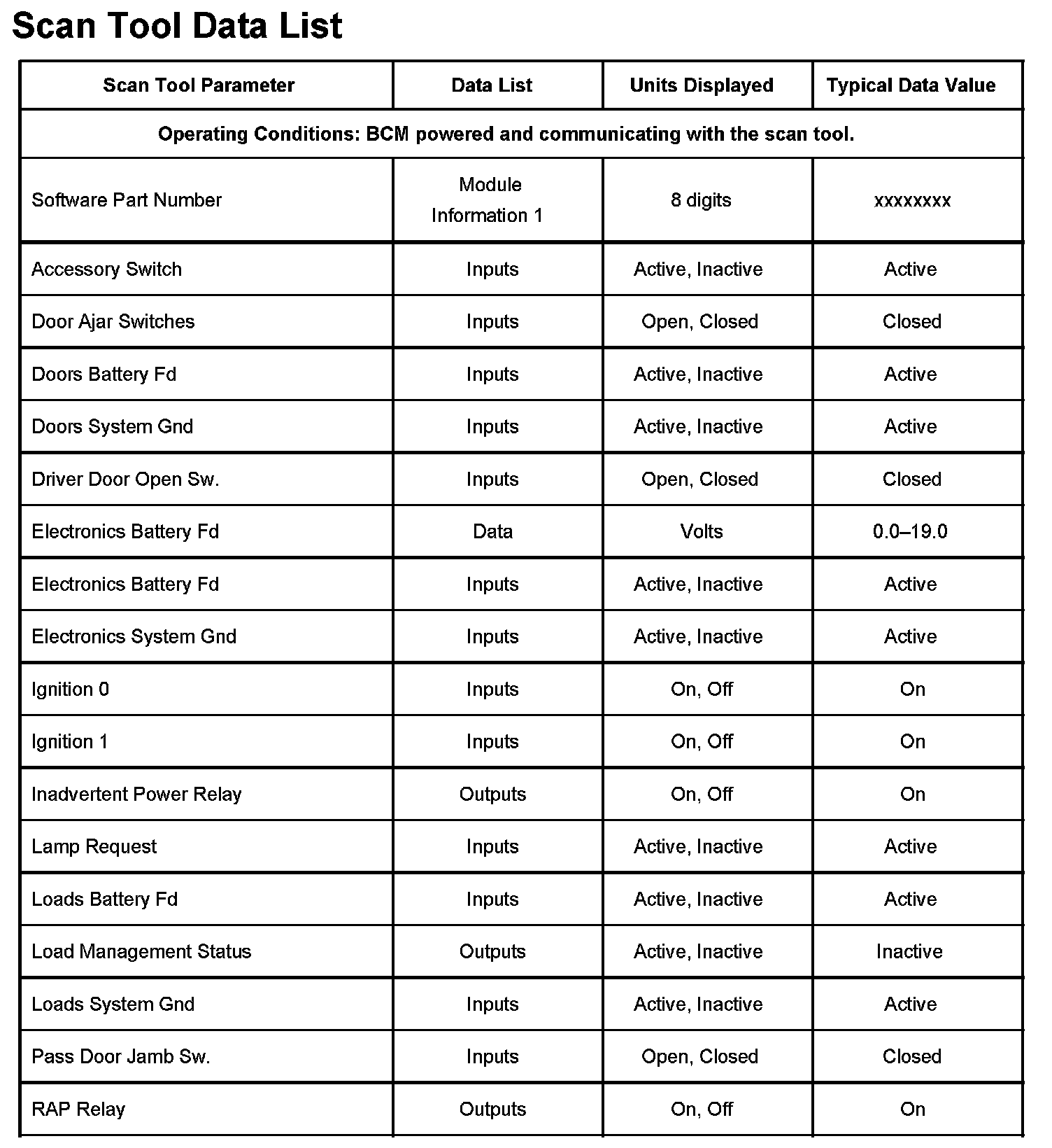 Scan Tool Data List: