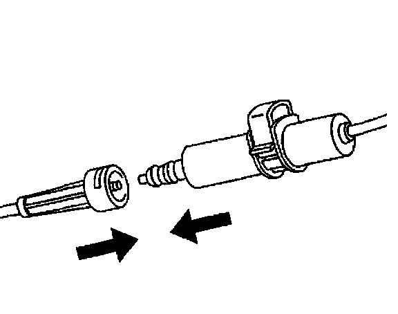 Caution: The automatic transaxle range selector cable is made out of two cable sections. After initial connection never separate the two metal couplings from one another. Integrity of the connection of the two metal couplings will be lost if separation of the two metal couplings occurs. When servicing the transaxle remove the cable at the automatic transaxle range selector lever and at the automatic transaxle range selector cable bracket. If either section of the cable needs to be replaced, replace both of the cable sections. Loss of connection integrity of the two metal couplings can cause loss of transaxle shift control which could result in personal injury.