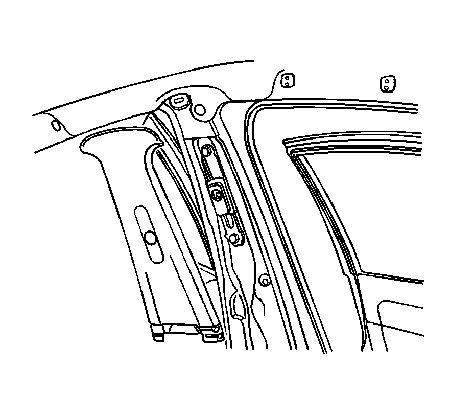 1. Remove the lower center pillar trim panel. Refer to Center Pillar Lower Trim Panel Replacement Center Pillar Lower Trim Panel Replacement.