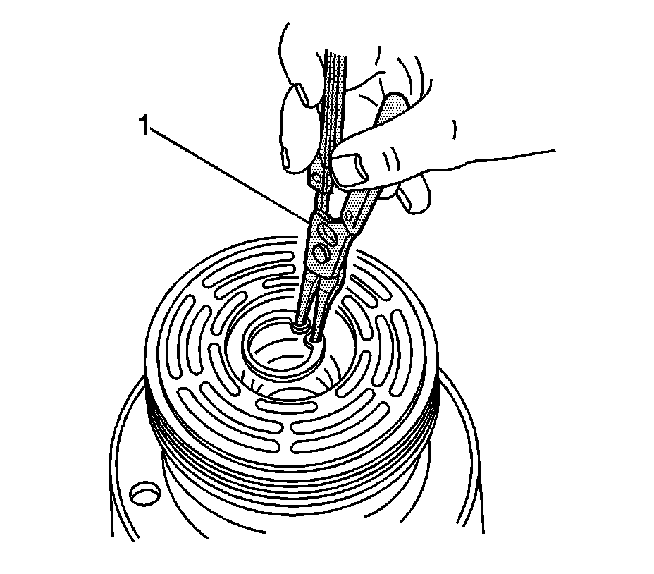 4. Remove the clutch drive plate and hub assembly from the compressor. Refer to Compressor Clutch Plate and Hub Assembly Removal Service and Repair.