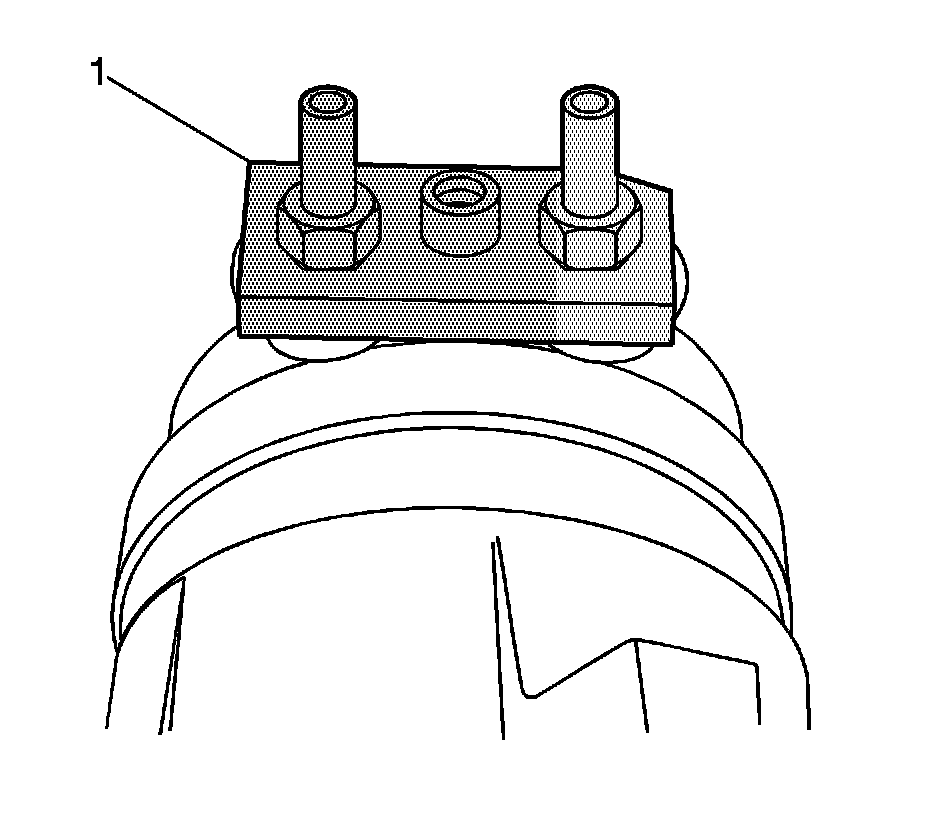 1. Install the J 9625-A (1) to the suction/discharge ports on the compressor.