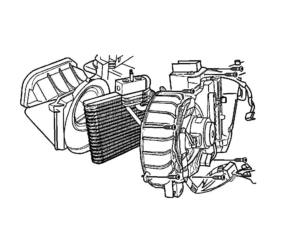 3. Remove the heater/air distributor case assembly. Refer to HVAC Module Assembly Replacement Service and Repair.