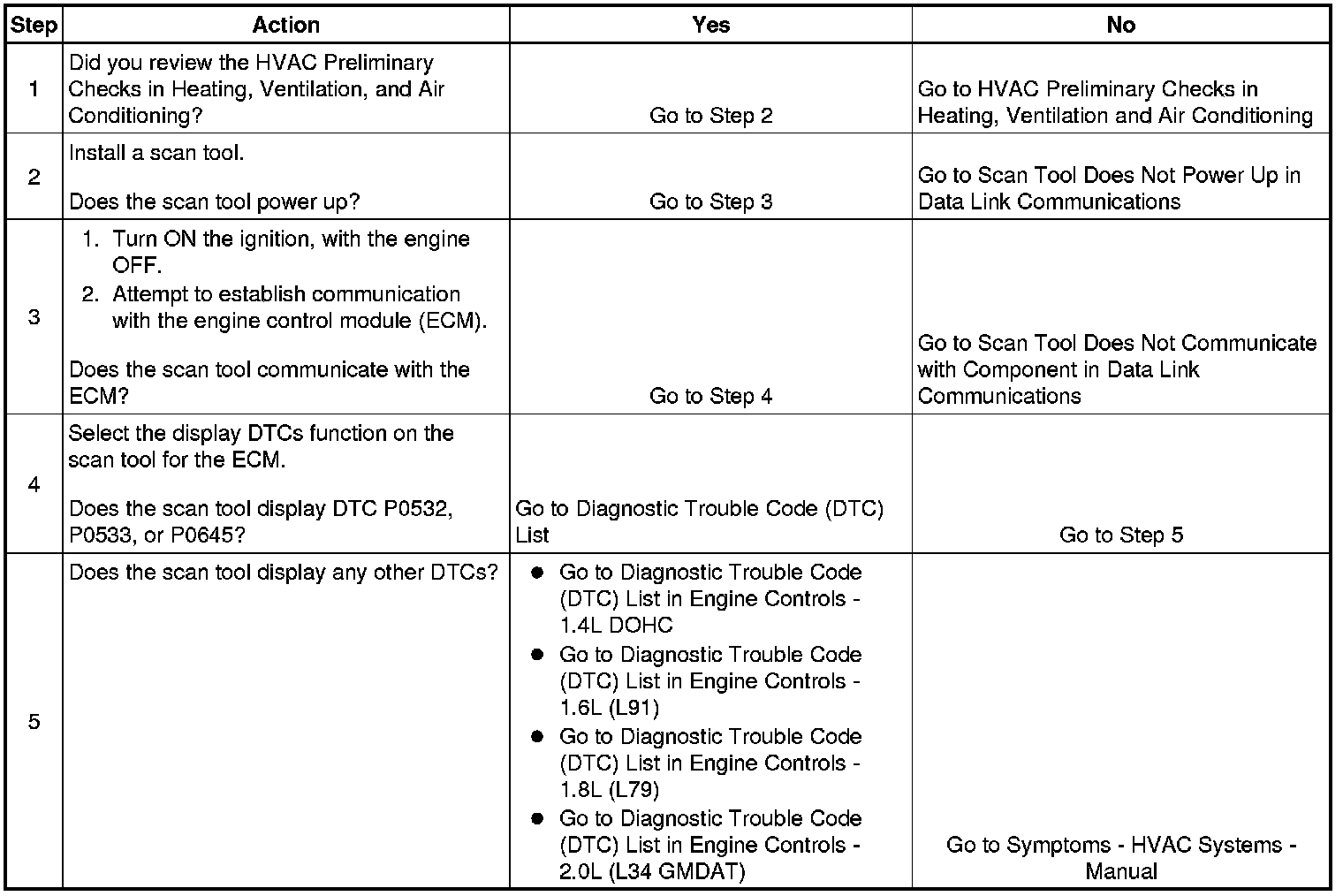4. This step determines if the engine control module (ECM) has set any DTCs related to the HVAC system.
