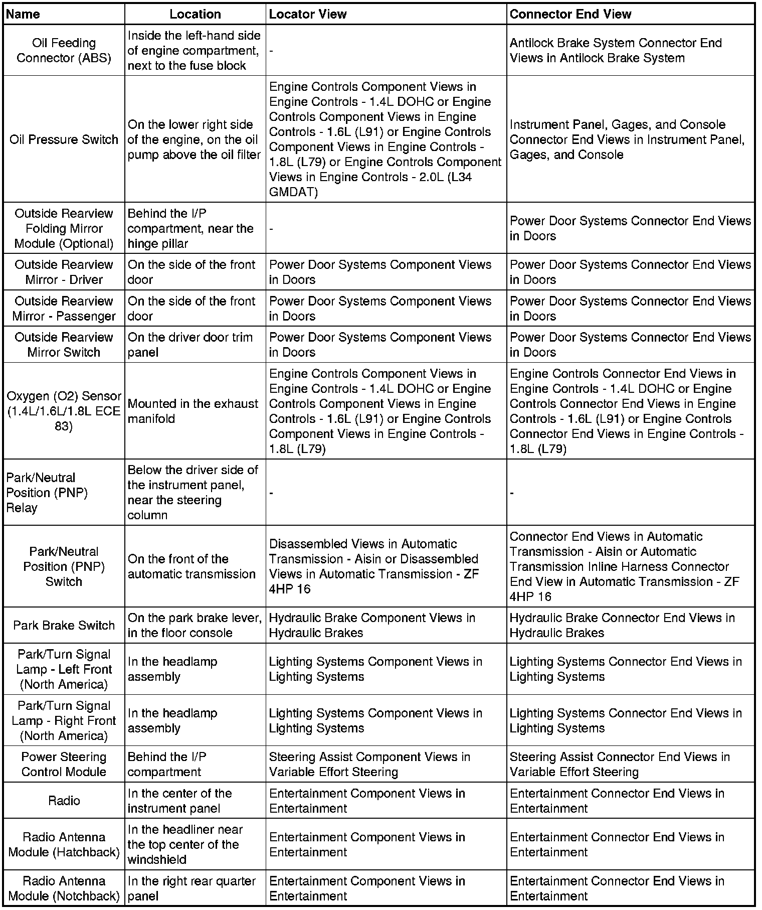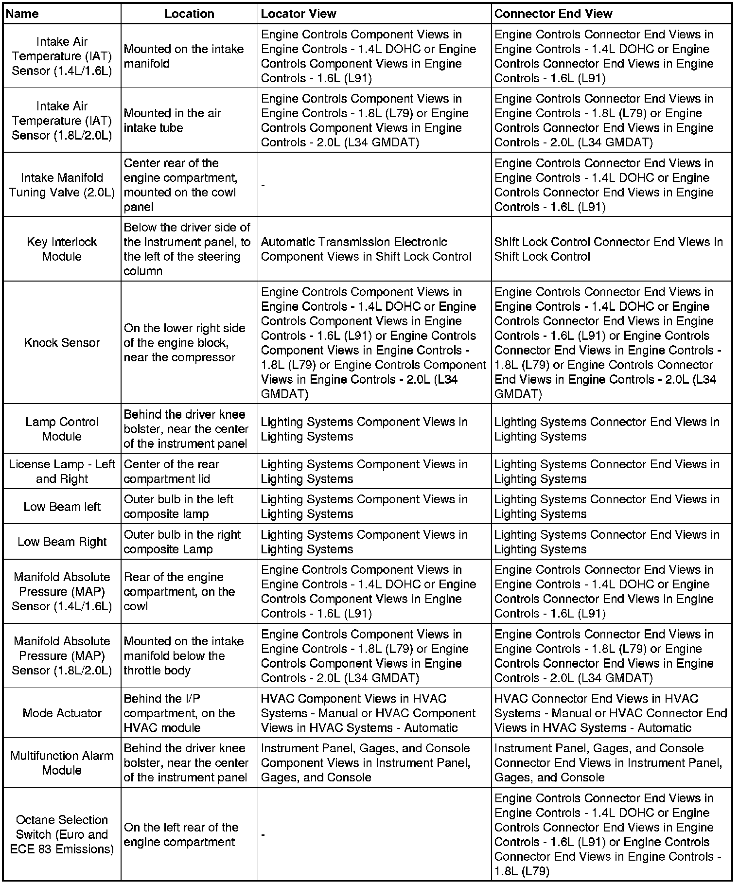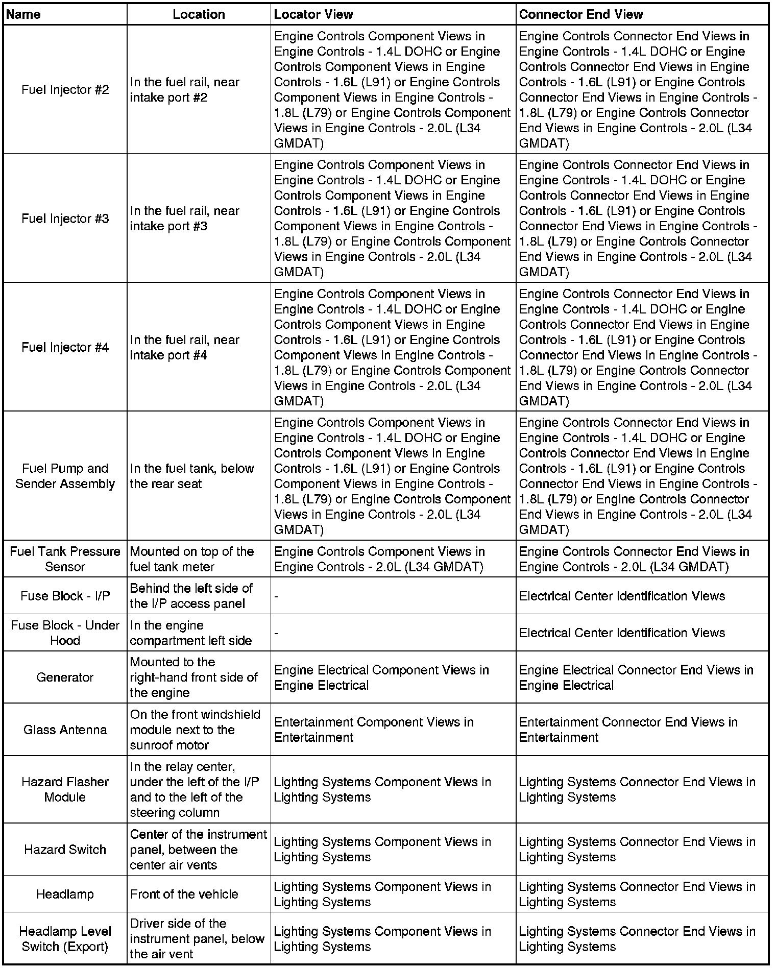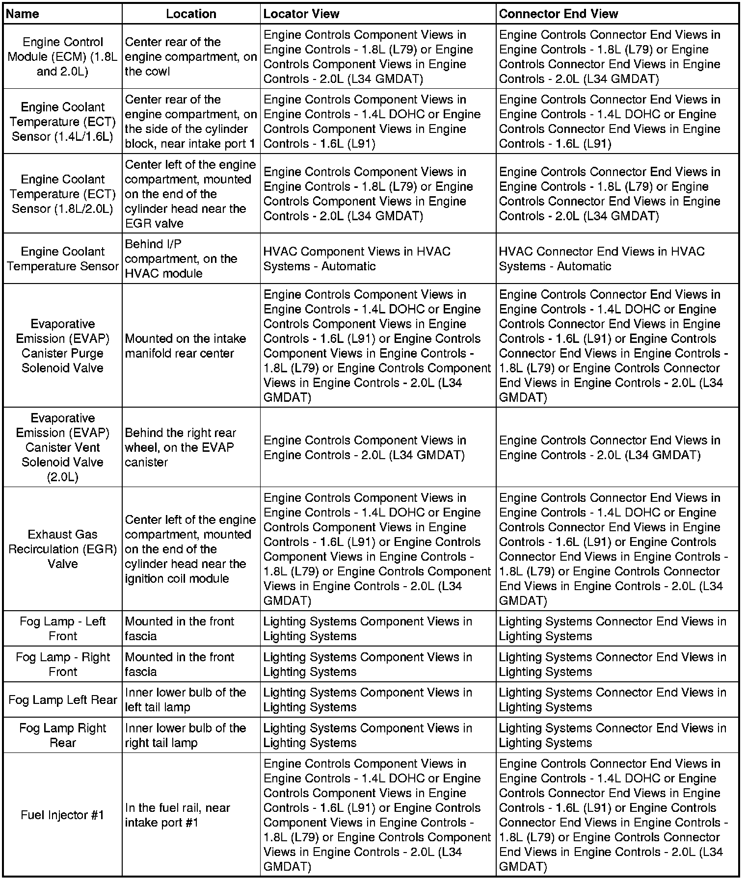 Optra (CANADA) L4-2.0L