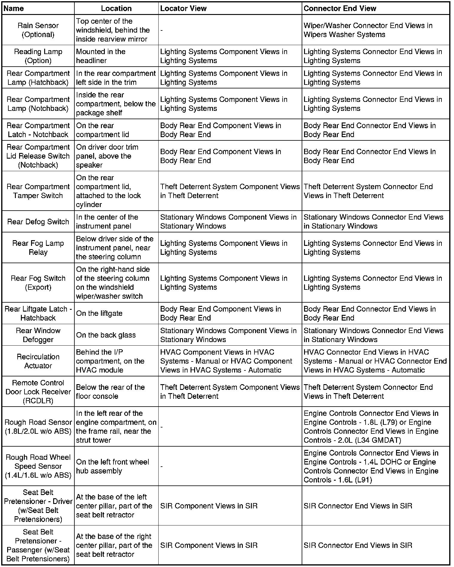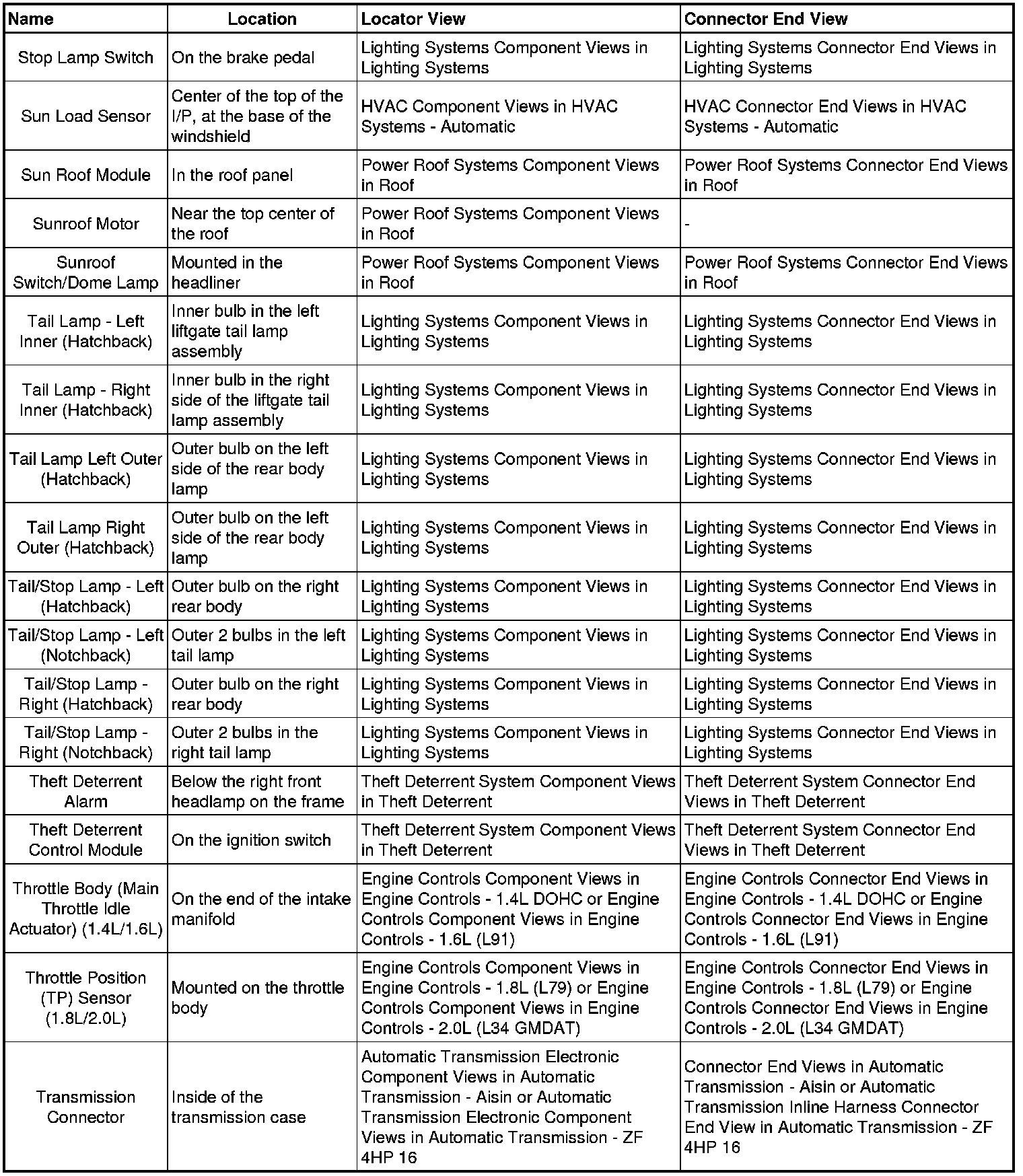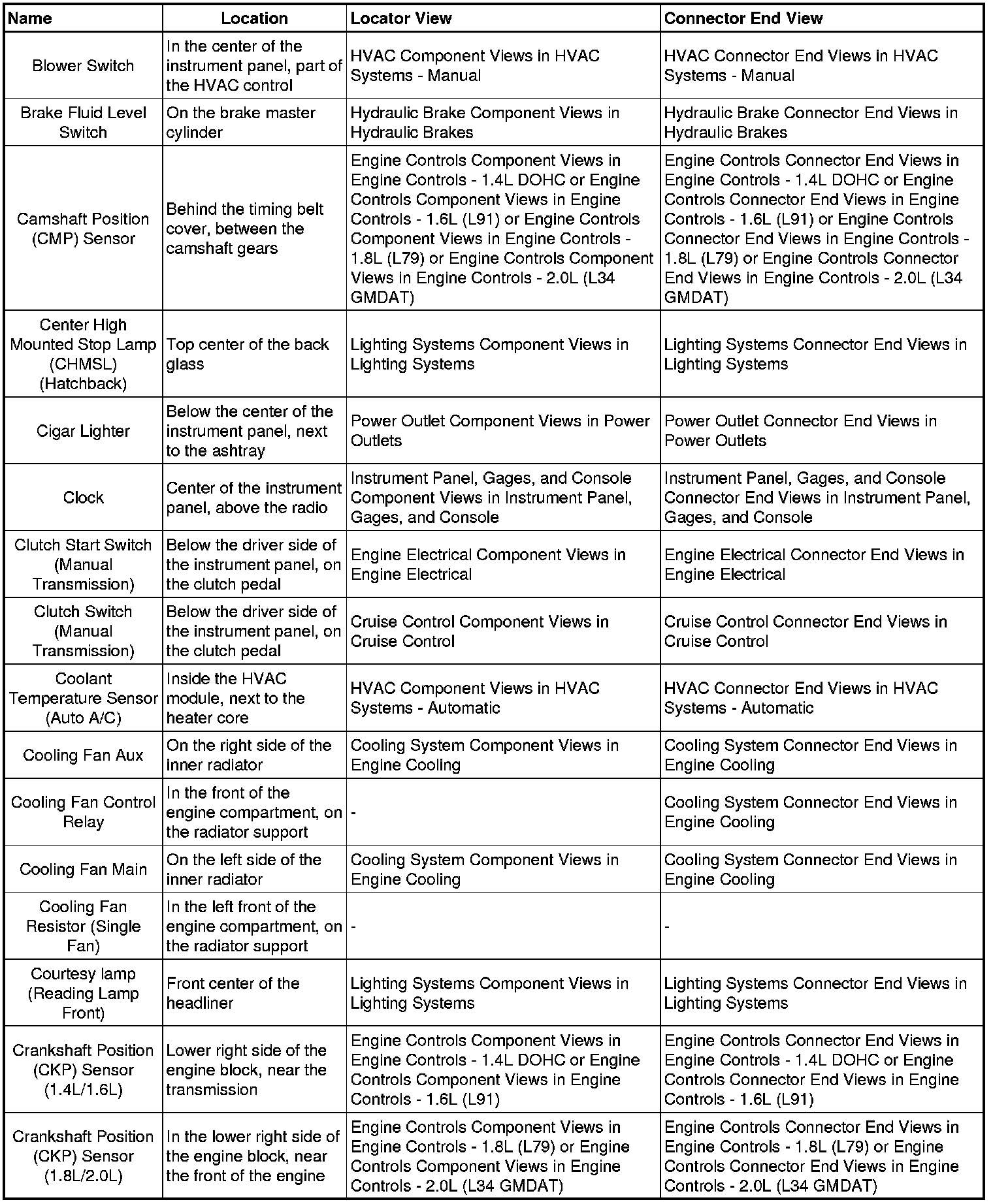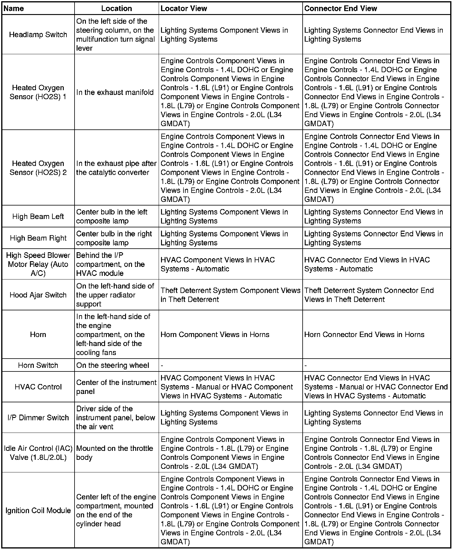 Optra (CANADA) L4-2.0L