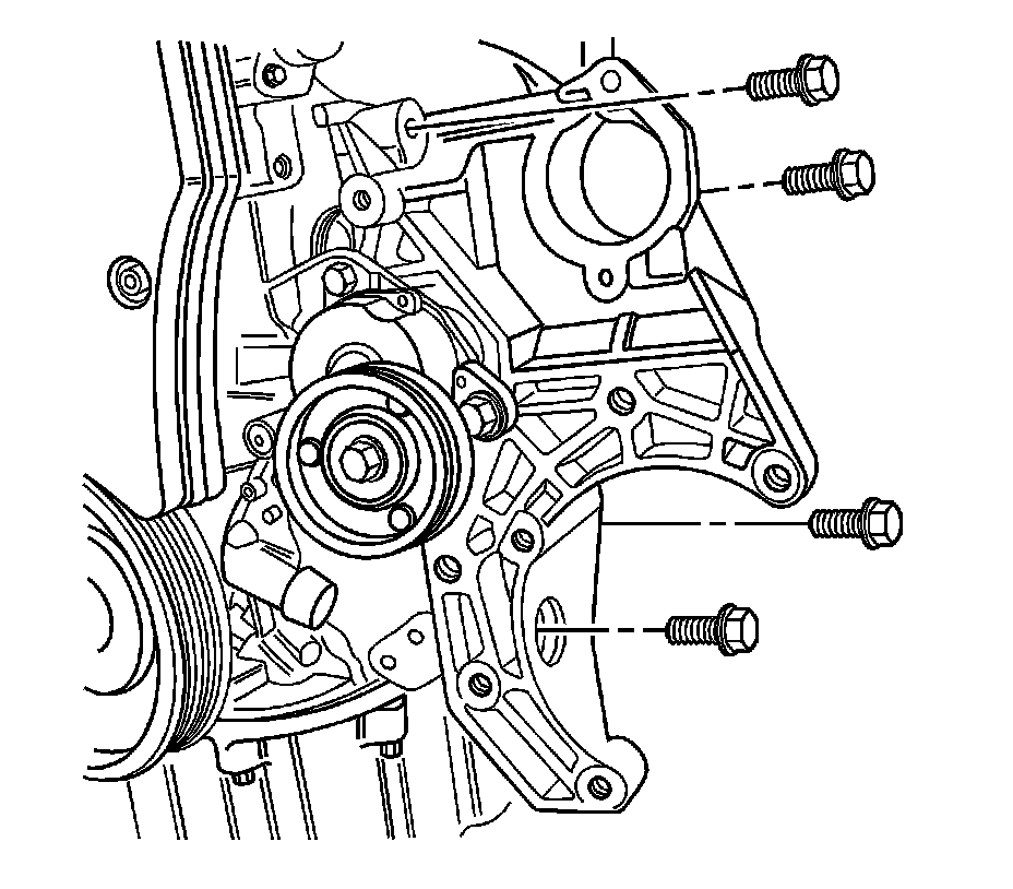 2. Remove the power steering pump, if equipped. Refer to Power Steering Pump Replacement (Gasoline Engine) Power Steering Pump Replacement (Gasoline Engine).