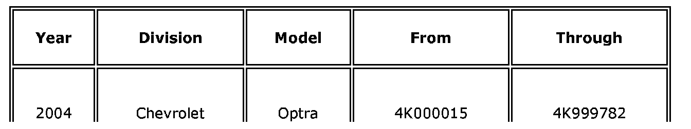 Involved are certain 2004-2006 Chevrolet Optra vehicles built within these VIN breakpoints: