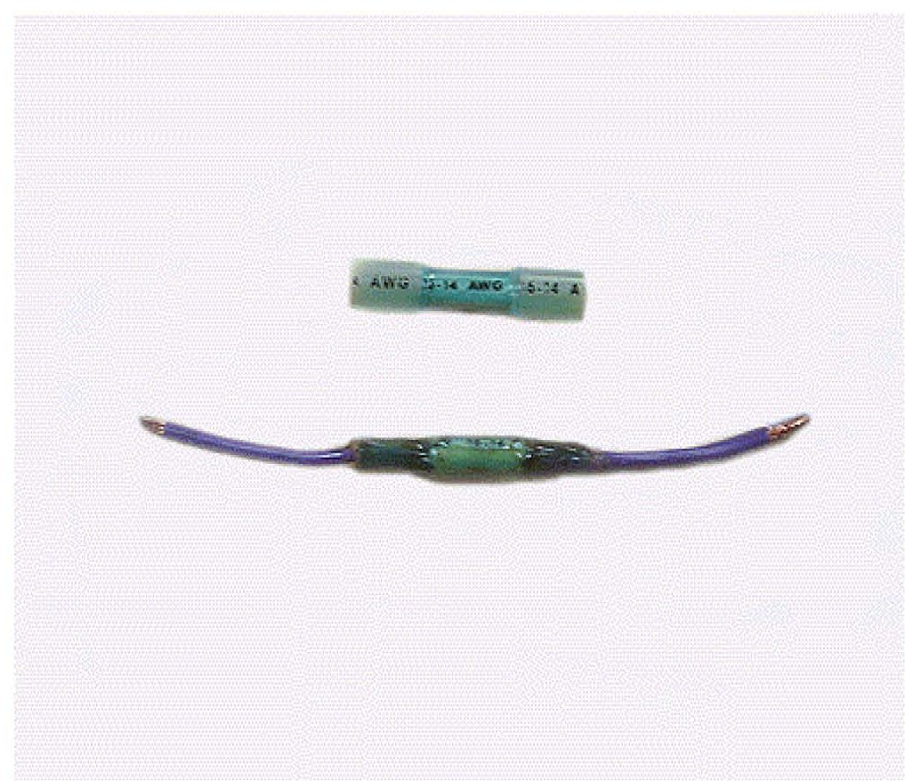 5. Strip approximately 20 mm (0.75 in) of insulation from the ends of the three purple wires and splice using blue splice (P/N 19168447). Insert the wire from callout 1 into one end of the splice and the remaining purple wires from callout 2 or 3 in the other end. Crimp the connector using a standard crimping tool and seal the splice sleeve using Ultra Torch or another approved heating tool. Refer to Splicing Copper Wire Using Splice Sleeves in SI.