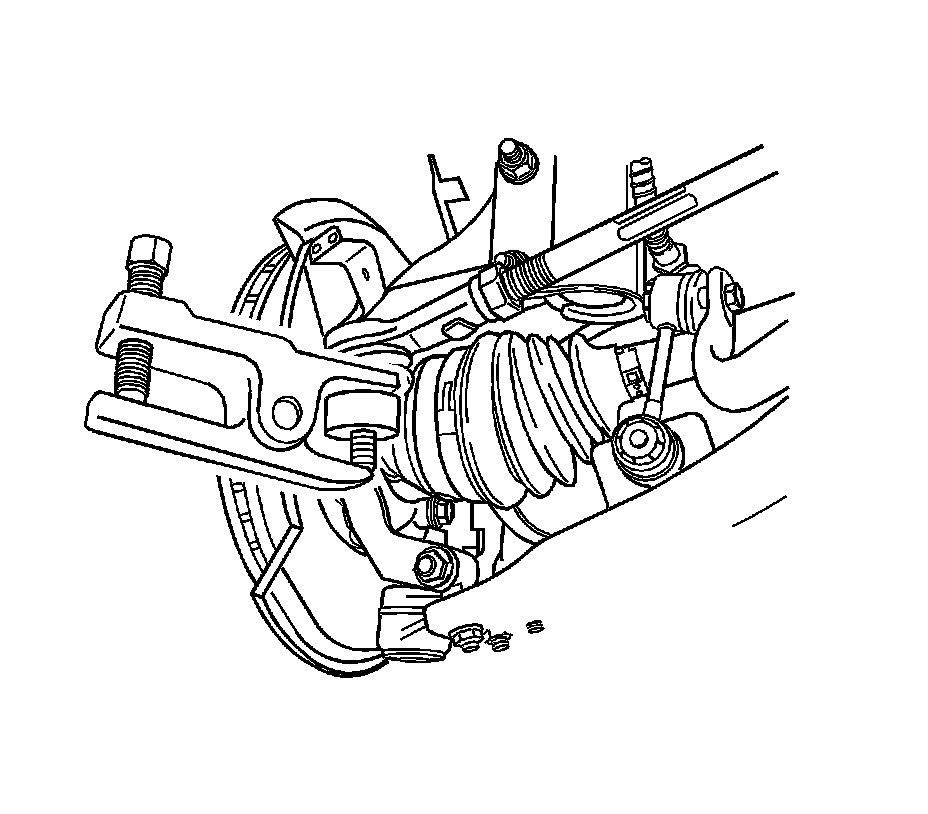 4. Loosen the outer tie rod adjusting nut and remove the outer tie rod by twisting it off the inner tie rod.