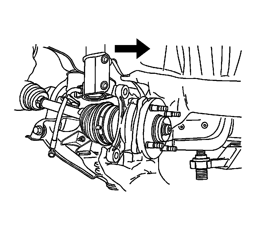 Notice: Do not overextend the wheel drive shaft. Allowing the inboard joint to overextend can cause separation of the internal components and lead to joint failure.
