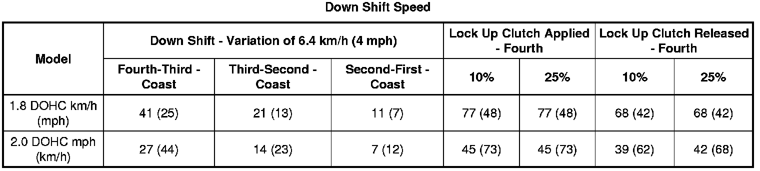 Lock-up Clutch Applied: Economic Mode, Fourth Gear - 1.8 DOHC