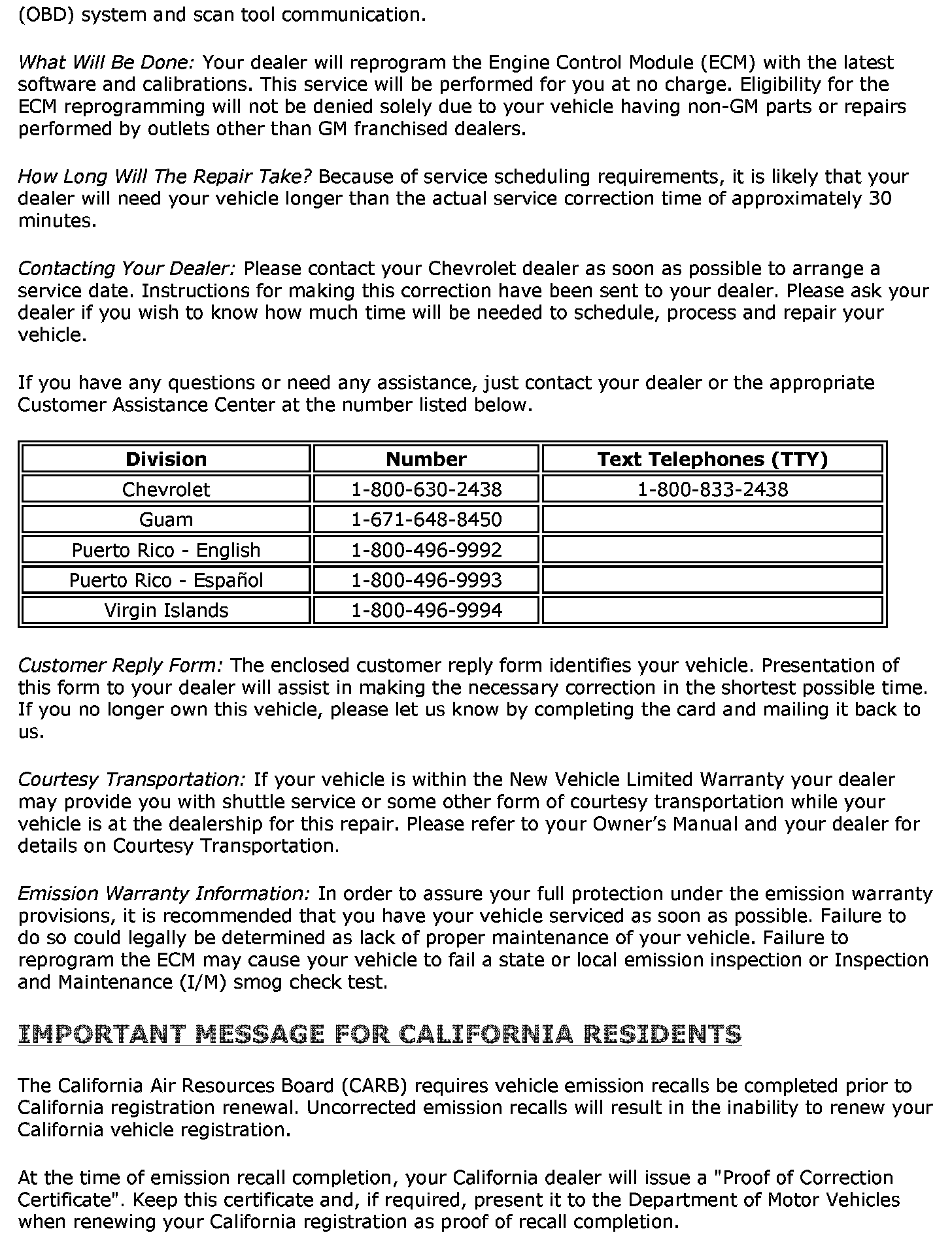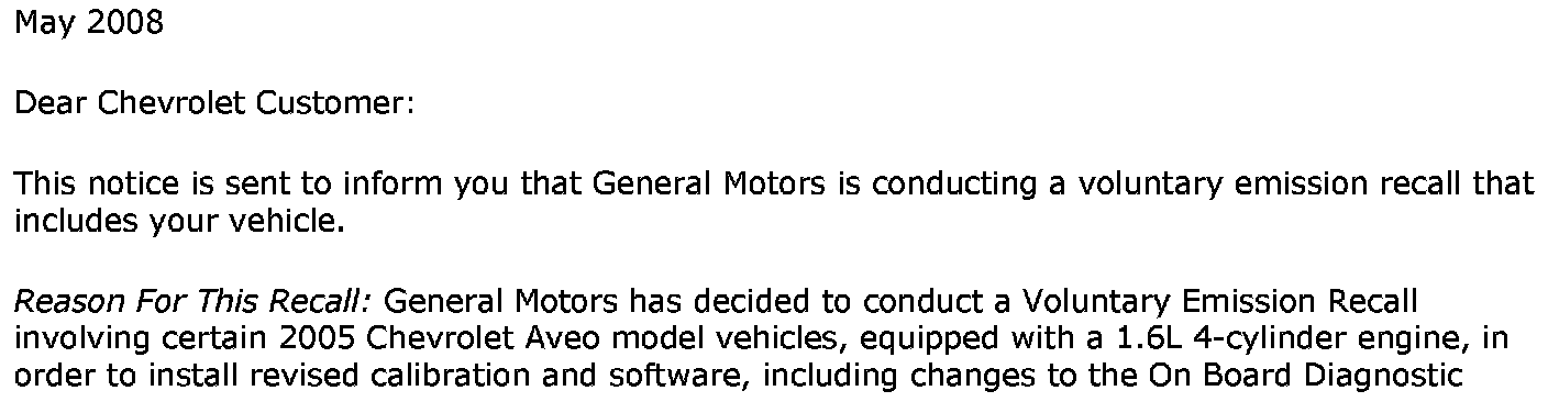Recall - ECM Update for OBD/Scan Tool Communication