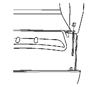3. Lift up on the I/P compartment door stop strap. Remove the stop strap from the I/P carrier.