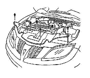 6. Remove the upper 2 hood latch support bolts (2).