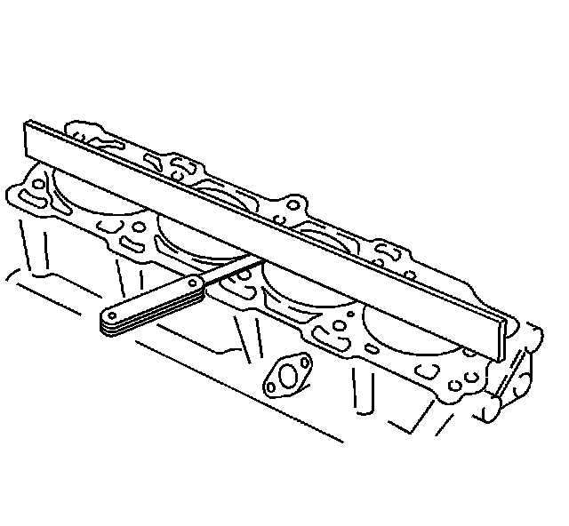 8. Use a straight edge and a feeler gage to check the deck surface for flatness. Carefully machine minor irregularities. Replace the block if more than 0.254 mm (0.010 in) must be removed.