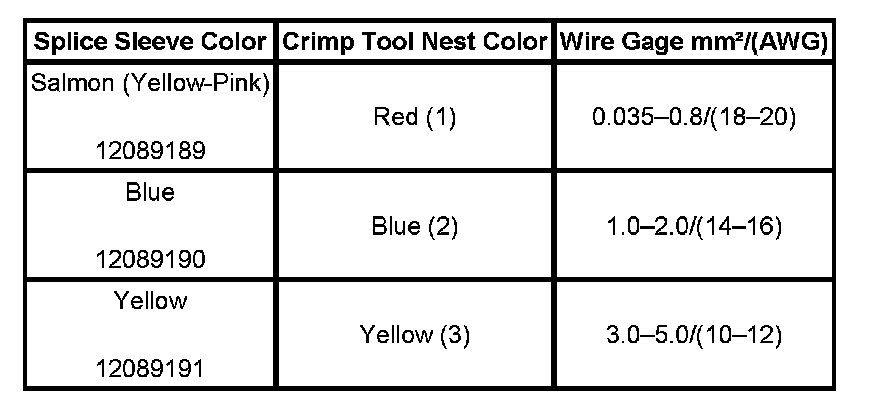 4. Select the proper duraseal splice sleeve according to the wire size. Refer to the above table at the beginning of the repair procedure for the color coding of the duraseal splice sleeves and the crimp tool nests.