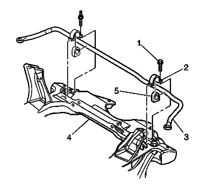 4. Remove the stabilizer shaft bushings (5) from the stabilizer shaft (3).
