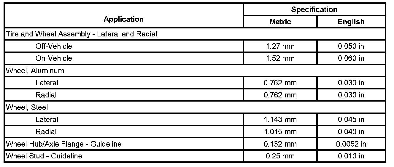 Tire and Wheel Runout Specifications