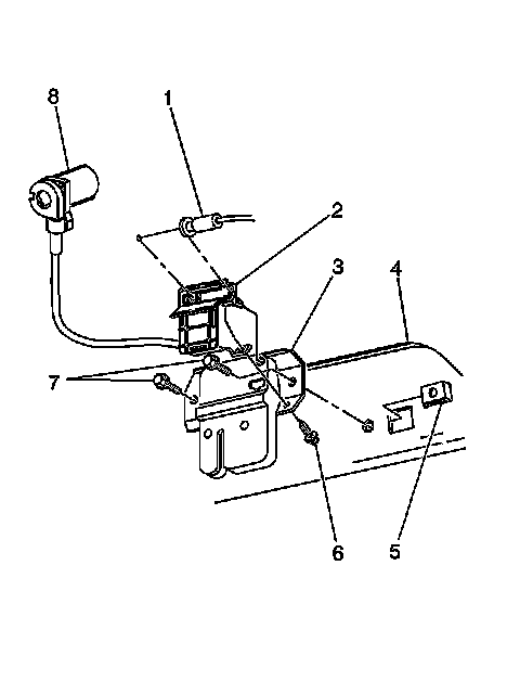 5. Press the rear compartment lid latch cable (8) onto the lock cylinder until the retainer tabs are fully seated.