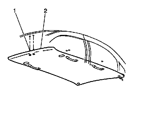 1. Install the headlining trim finish panel (2) into the vehicle.