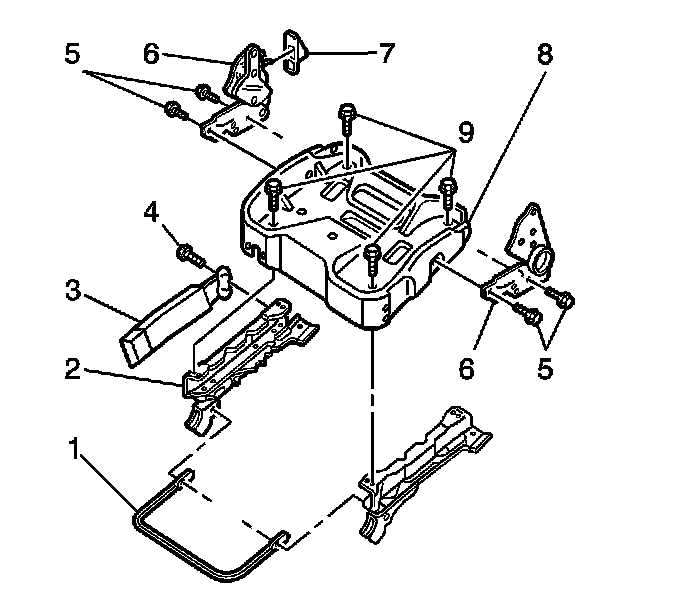 7. Install the power seat switch bracket to the cushion frame (8), if equipped. Install the power seat switch bracket screw.