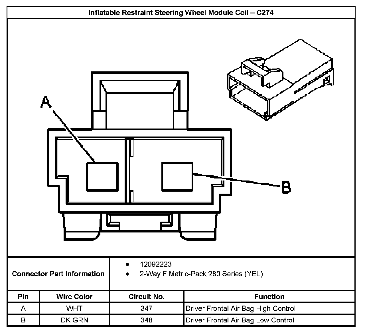 Inflatable Restraint Steering Wheel Module Coil - C274:
