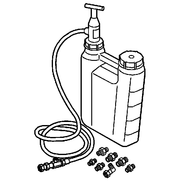 4. Pump the handle on the J 45299 in order to flow a minimum of 1-1.9 liters (1-2 quarts) of engine oil. Observe the flow of engine oil through the flexible hose and into the engine assembly.