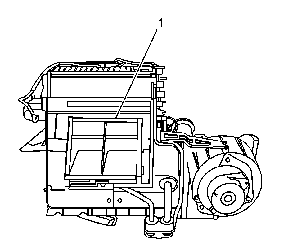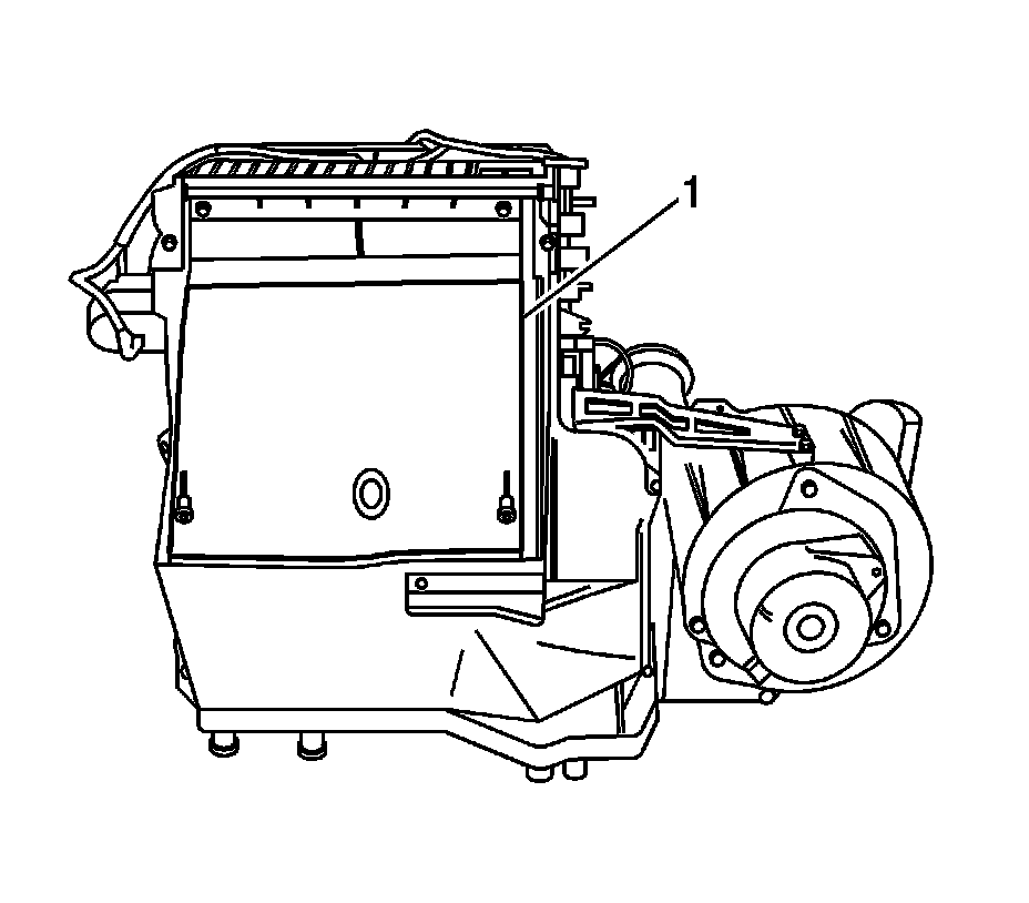 5. Remove heater core cover (1) from HVAC module.