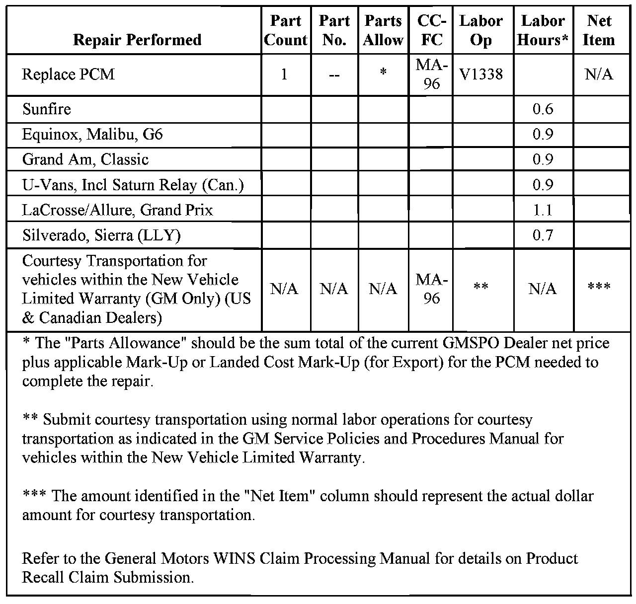 The labor time allowance listed in this recall is different than that currently published in the labor time guide for performing the same operation. In the near future, the labor time guide will be updated with this new information.