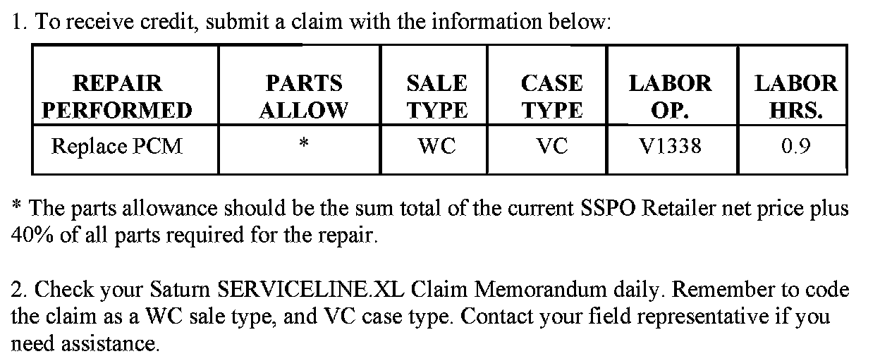 Saturn U.S. retailers must verify recall involvement by running a National Vehicle History (NVH) prior to performing repairs. Not all vehicles within the above breakpoints may be involved. Recall claims will only be paid on involved vehicles.