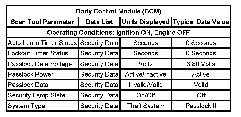 Scan Tool Data List - Antitheft System