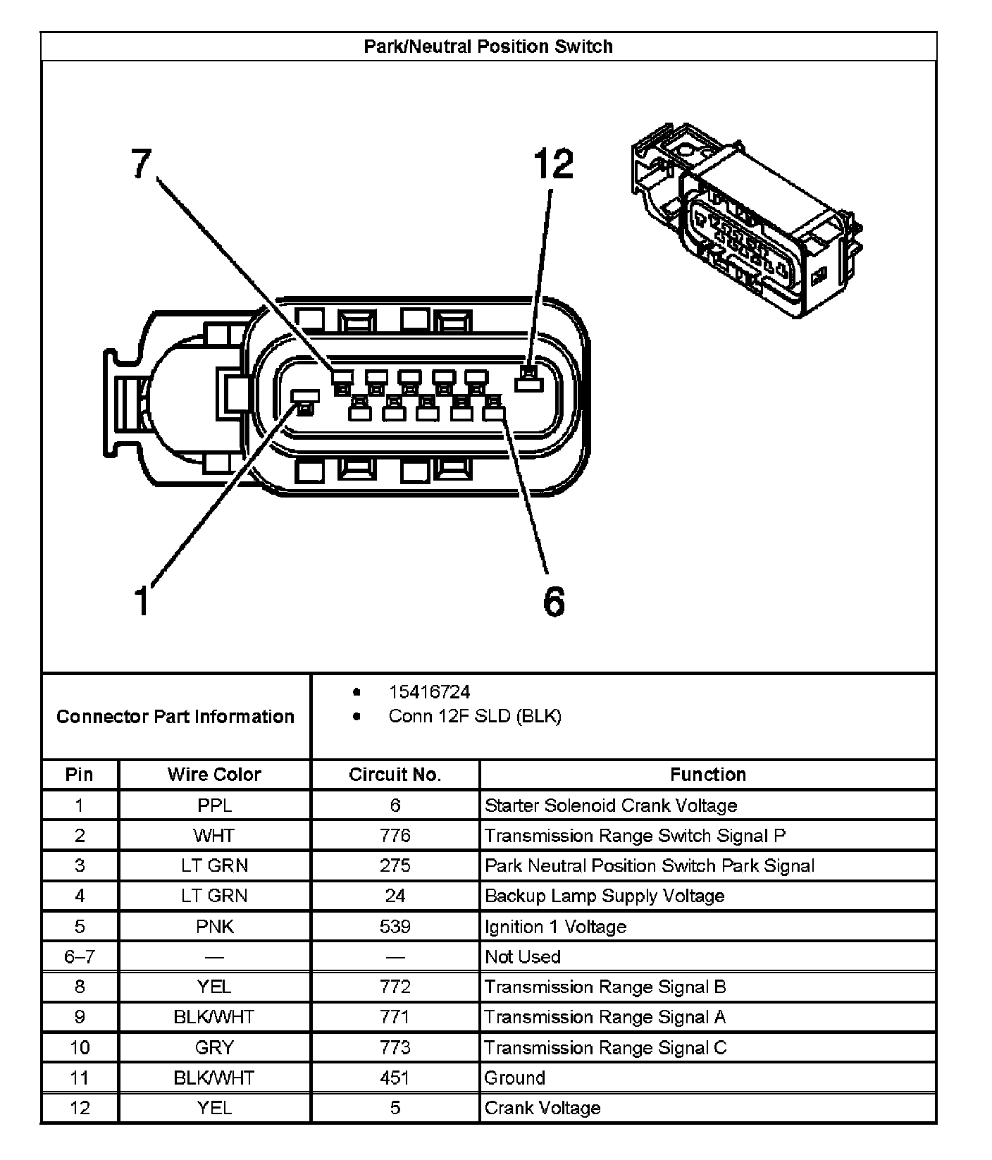 Transmission Position Sensor/Switch: Diagrams