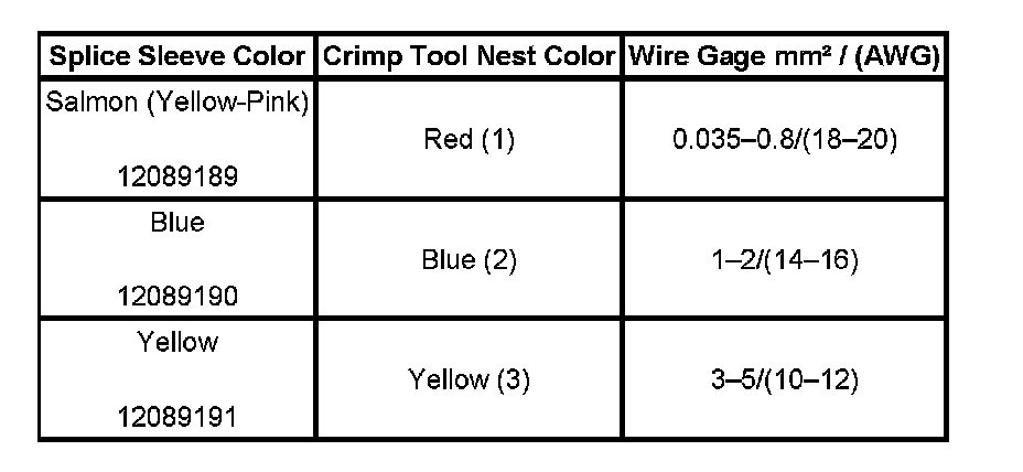4. Select the proper duraseal splice sleeve according to the wire size. Refer to the above table at the beginning of the repair procedure for the color coding of the duraseal splice sleeves and the crimp tool nests.