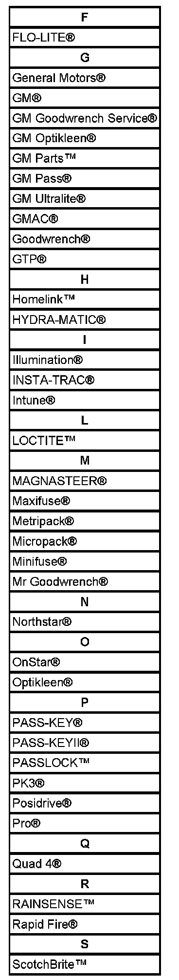 Listed are Registered Trademarks ((R)) or Non-Registered Trademarks ((TM)) which may appear in this service data.