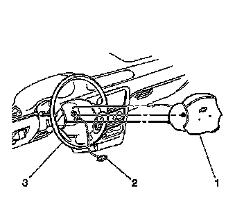 3. Remove the steering wheel inflator module (1) from the steering wheel (3).